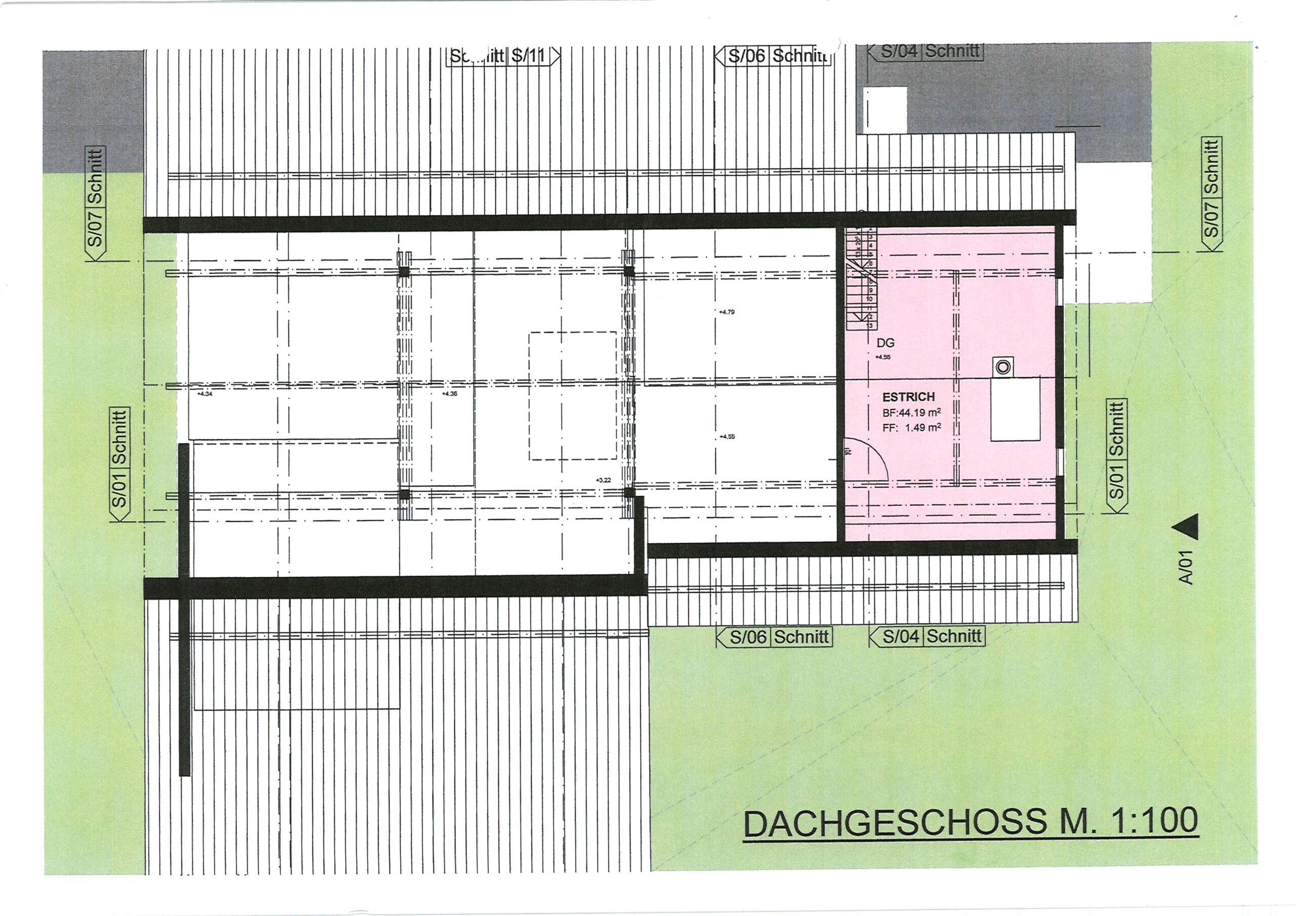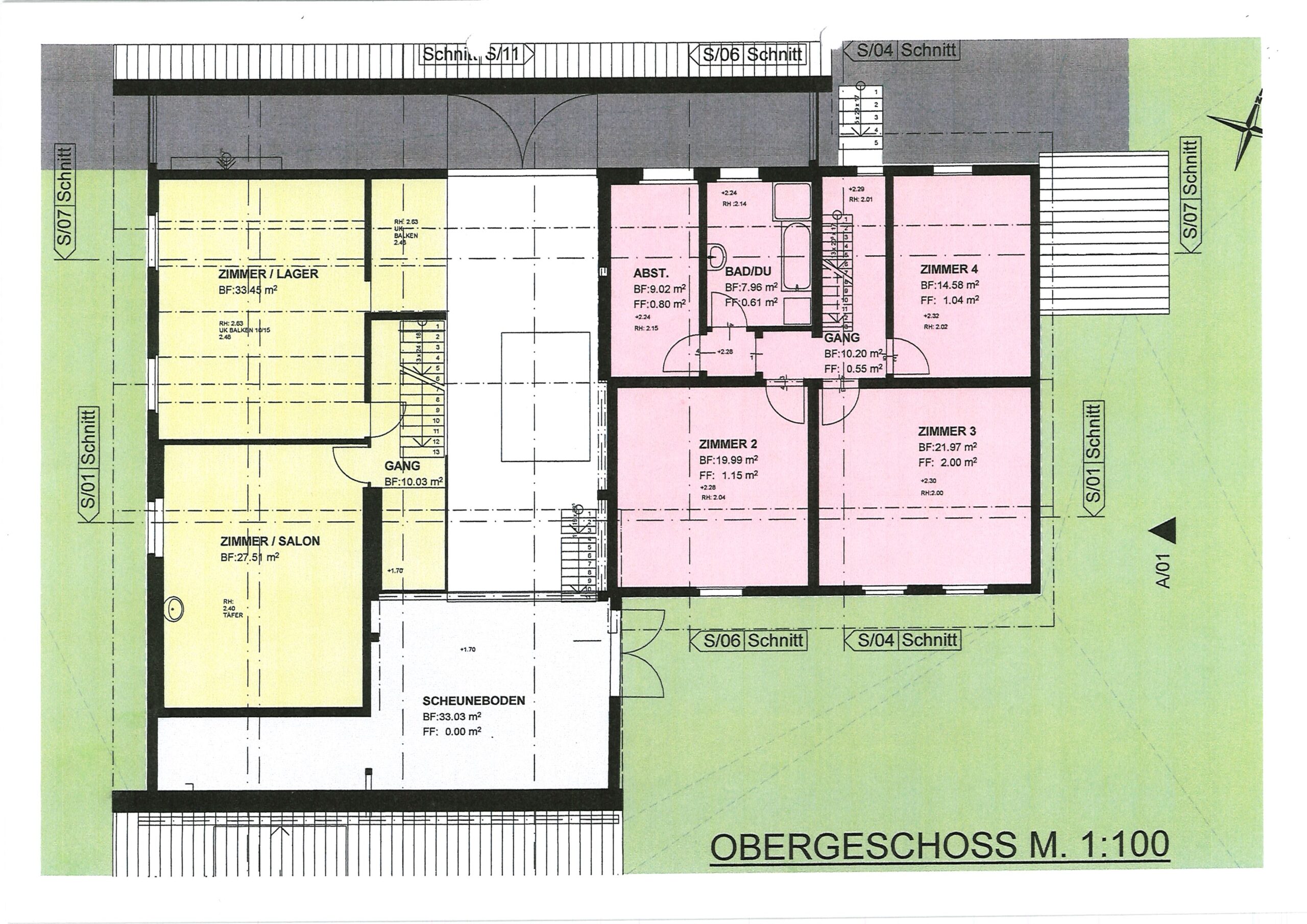 Im Obergeschoss sind 3 grosse Schlafzimmer, das Badezimmer mit Badewanne/Dusche/WC sowie ein Abstellraum untergebracht. Das Dachgeschoss mit dem Estrich ist über die Treppe zu erreichen und bietet weiteren Stauraum sowie grosses Ausbaupotenzial.