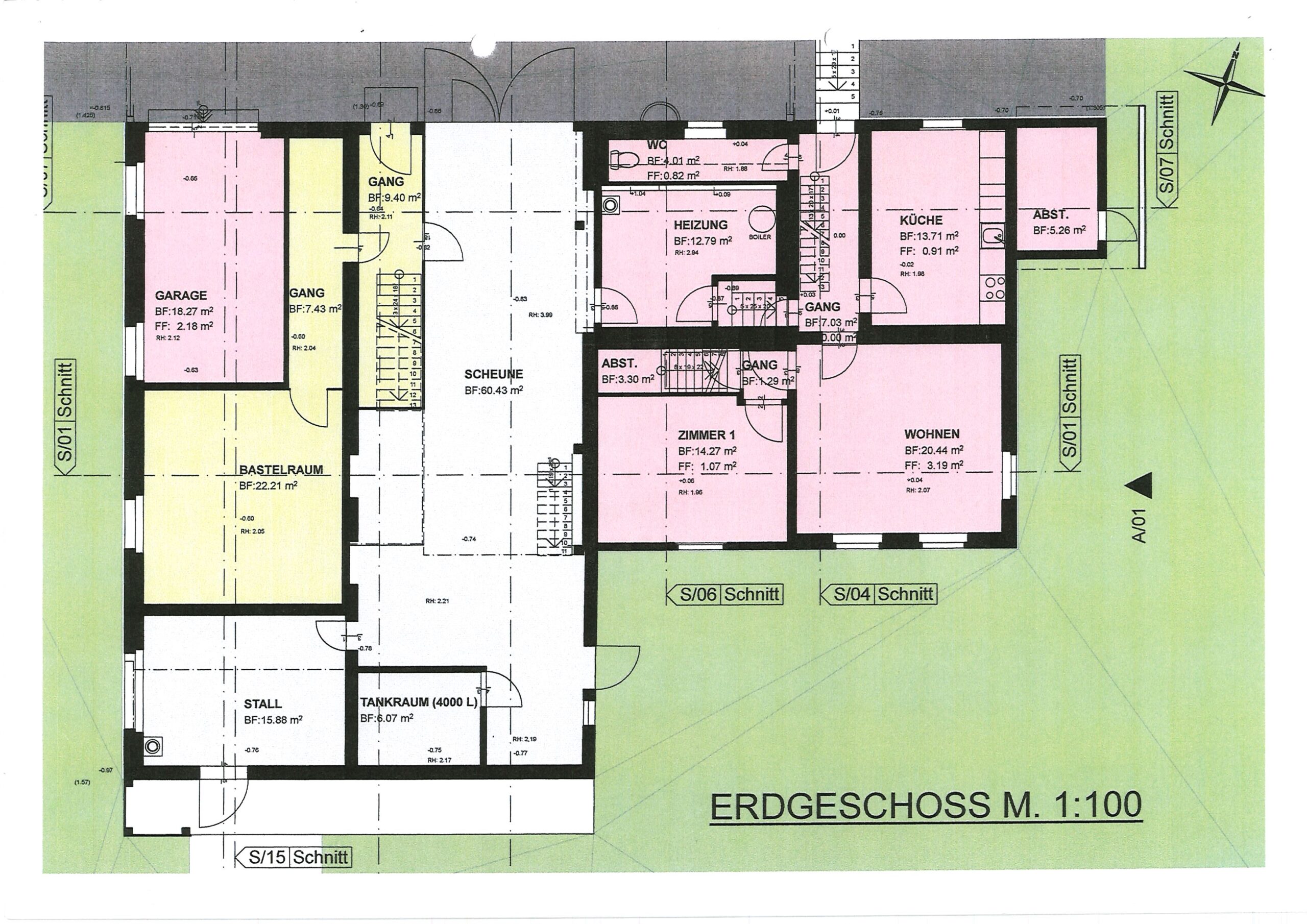 Die Einliegerwohnung im 1. Obergeschoss des rechten Scheunenteils ist über einen separaten Eingang neben der Garage und eine eigene Treppe zu erreichen. Die Wohnung verfügt über einen grossen Wohnbereich mit Küchenzeile sowie ein separates Schlafzimmer mit Zugang zu einem kleinen Badezimmer mit Dusche/WC. Im Erdgeschoss befindet sich hinter der Garage zudem ein neu renovierter Hobbyraum. Im linken Scheunenteil steht viel Platz hinter dem grossen Doppeltor zur Verfügung. Im hinteren Teil wurde ein weiterer Hobbyraum ausgebaut, welcher einen direkten Zugang zum Sitzplatz hat. Daneben befindet sich der ehemalige Schweinestall mit direktem Zugang zum Garten.